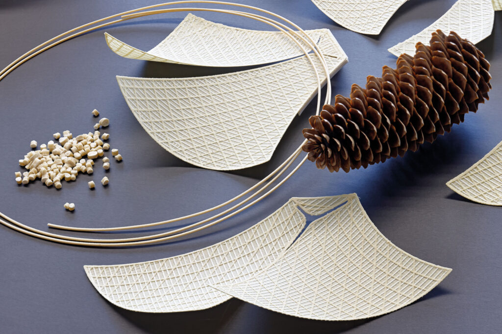 Für die Herstellung von 424 unterschiedlichen, selbstformenden Elementen werden lediglich 5,5 Kilogramm Filament benötigt, das auf Zellulose basiert.